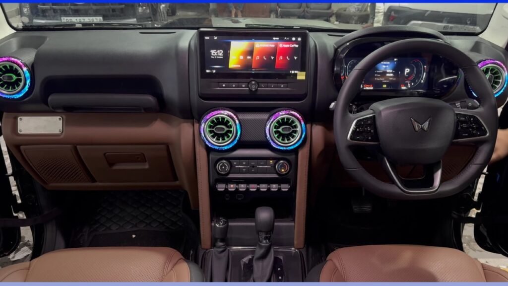 Storage is plenty. Door bins deep. Glovebox cooled. Armrest slides. ISOFIX for kids. Overall, interior suits families. It beats old Thar in quality. In India, leather cleans easy. Ventilation works in 45 degree heat. White interior optional. This looks fresh.